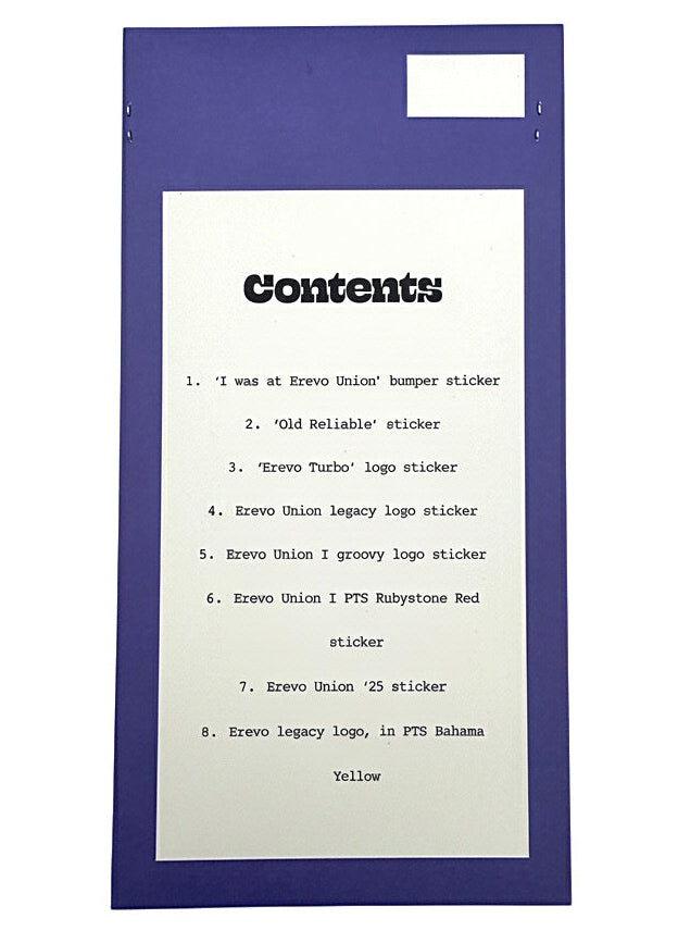 에레보 유니언'25를 기념하는 스티커 팩입니다. 물과 햇빛에 강한 필름 소재로 제작되어, 차량 외부는 물론 캐리어, 노트북 등 다양한 곳에 자유롭게 부착하실 수 있습니다.