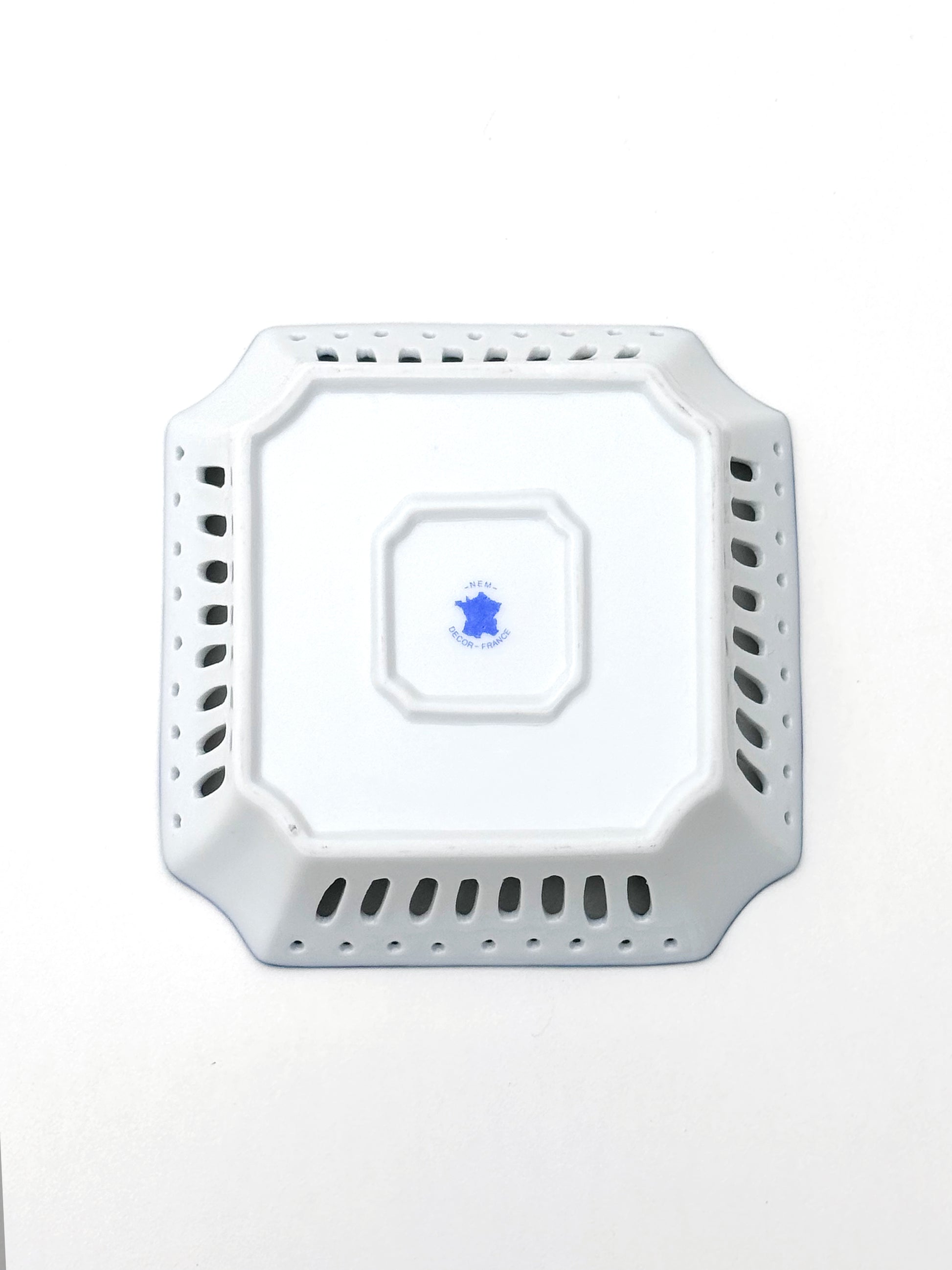This vintage commemorative dish, made in Le Mans, France, features an illustration of classic race cars set against the backdrop of Le Mans Cathedral (Cathédrale Saint-Julien du Mans), framed by delicately reticulated edges. The cathedral, a prominent Gothic landmark perched atop the old town, has long served as a symbolic backdrop to the 24 Hours of Le Mans, connecting the city’s medieval heritage with its legendary motorsport legacy. Believed to have been produced in the late 1980s by NEM Décor France, this 6x6 inch porcelain piece blends durability with charm — crafted from lightweight ceramic and ideal for use as a trinket dish, candy tray, or small dessert plate. Quietly beloved by motorsport fans, Le Mans enthusiasts, and vintage porcelain collectors alike, it captures the spirit of racing, the texture of history, and the timeless beauty of French craftsmanship.