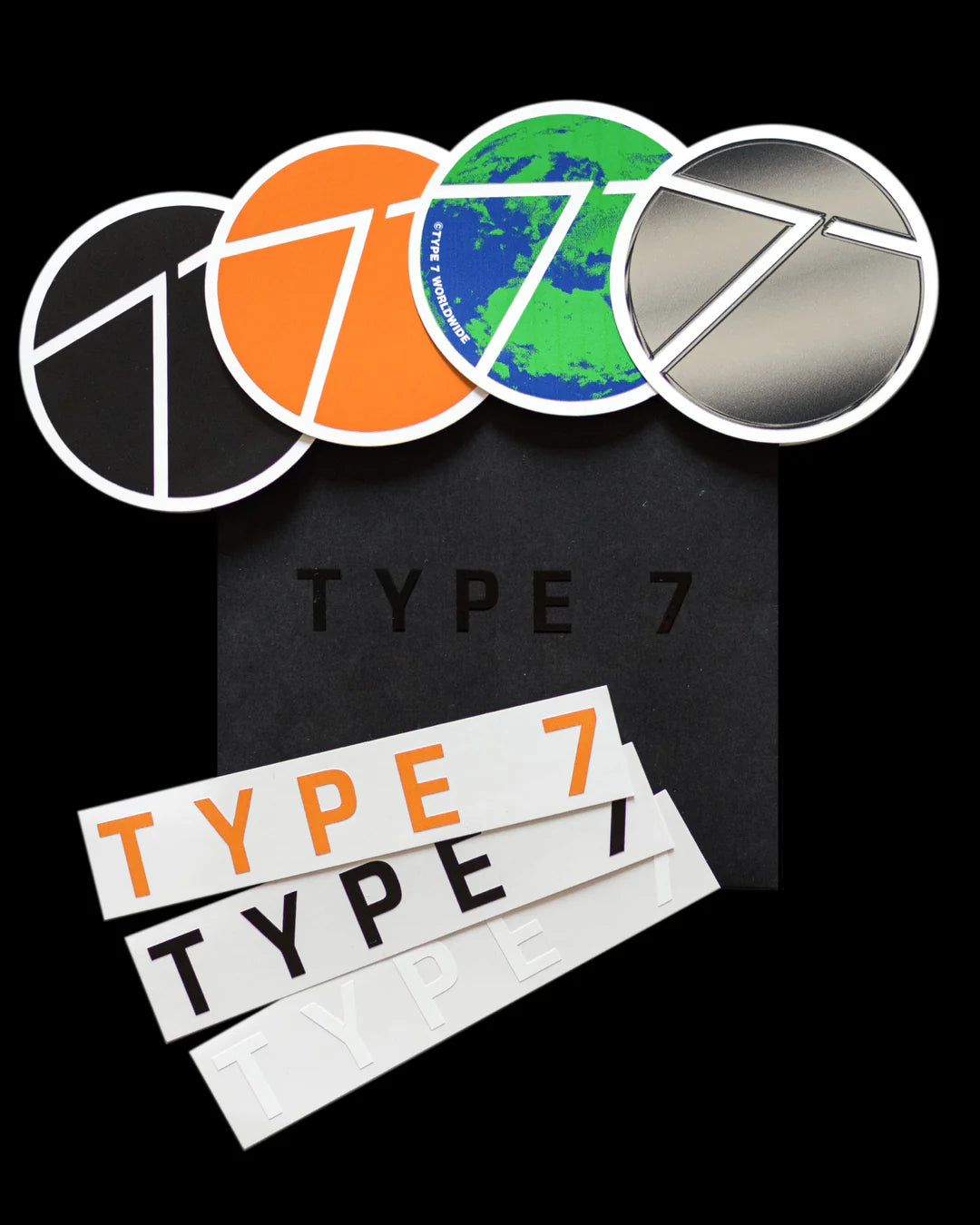Show your love for Type 7 with this never-before-seen die-cut sticker pack, including four roundel badges and three Typeface logos.